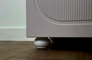 Корпус комода выполнен из ЛДСП толщиной 16 мм, фасады изготовлены из МДФ в плёнке ПВХ. Фасады с фрезеровкой подчёркивают аккуратный внешний вид изделия. Оригинальные круглые ручки и опоры придают комоду современный и лёгкий характер, делая его гармоничной частью детского интерьера.