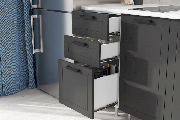 Глубина нижних шкафов со столешницей: 600 мм