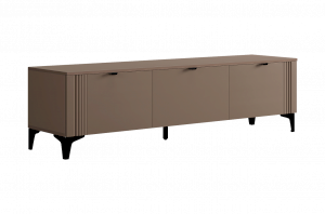 Тумба оснащена тремя распашными дверцами, которые открывают доступ к просторным внутренним полкам, идеально подходящим для хранения посуды, бытовой техники, аксессуаров или других предметов. Металлические ручки придают изделию современный вид и удобство в использовании.