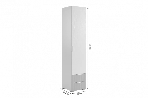 У шкафа два удобных ящика, оснащенные шариковыми направляющими для плавного и бесшумного закрывания фасадов. Благодаря универсальной сборке, можно менять открывание фасада влево или впрво. Наполнение можно менять: оставить полки или убрать их, чтобы повесить одежду на штангу.