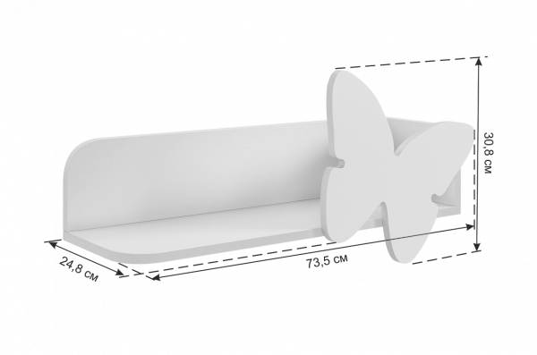 Размер полки Сердечко/Бабочка: ШхГхВ 735х248х308 мм