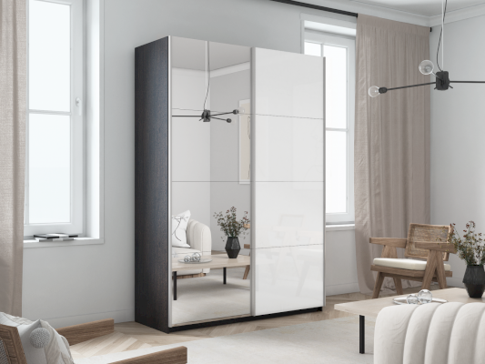 Шкаф-купе 2-х дверный Прайм Зеркало/Белое стекло (Е1)
