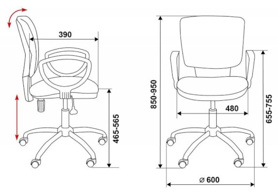 Высота с подлокотниками: 655-755