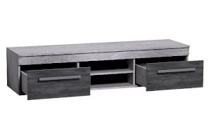 Мебель под ТВ в спокойной сероватой гамме идеально впишется в современный городской интерьер. Фасады ящиков "под бетон" хорошо обыгрывают серебристые ручки из массива дерева. Ящики комплектуются шариковыми направляющими полного выдвижения, что обеспечивает им легкую простую установку и максимальное использование полезной площади ящика. Глубина ящика 40 см, высота 17 см, ширина 51 см. Регулируемые опоры позволяют компенсировать незначительные неровности пола.