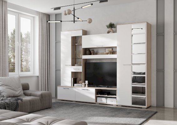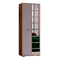 Невероятно элегантная модель шкафа Флай станет практичным решением для хранения вещей в любой комнате. Корпус изделия выполнен из ЛДСП в цвете дуб сонома. Одна створка распашных дверок выполнена из матового ЛДСП белого цвета, а вторая декорирована зеркальной плиткой с фацет-обработкой. Внутренне наполнение состоит из двух вместительных полок, между которыми находится ниша со штангой для размещения вещей на вешалках.